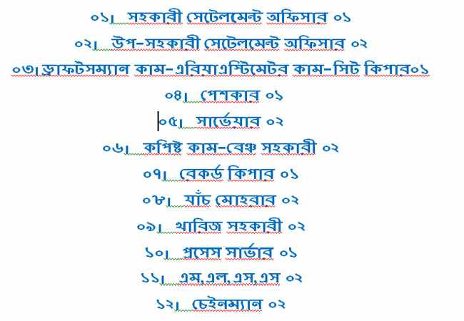 ১০। চুড়ান্ত প্রকাশনাঃ- উপরোক্ত স্তরসমূহের কাজ সমাপ্তির পর আনুষঙ্গিক কার্যাদি সম্পর্ন করে পর্চা ও নকশা মুদ্রন করা হয়। মুদ্রিত নকশা ও পর্চা পূনঃ পরিক্ষা করে তাহা চুরান্ত প্রকাশান দেওয়া হয়।